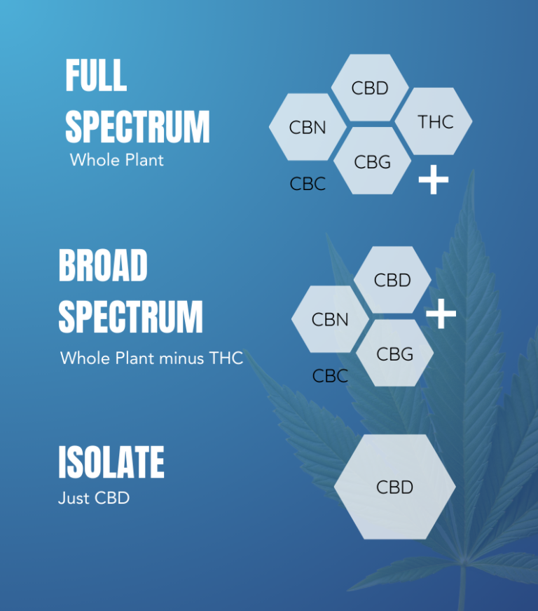 • CBD Isolate — Pure CBD only; lacks entourage benefits.